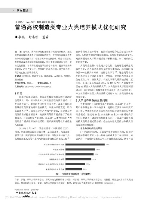 李奥,封志明,董霖.普通高校制造类专业大类培养模式优化研究[J].中国教育技术装备,2020(03):86-88.
